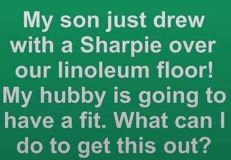 My son just drew with a Sharpie over our linoleum floor! My hubby is going to have a fit. What can I do to get this out?