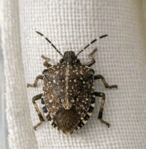 - Found this weird shield shaped bug crawling on my curtains in the middle of winter It moves really slowly and has a speckled brown back Is this going to bite or infest my house