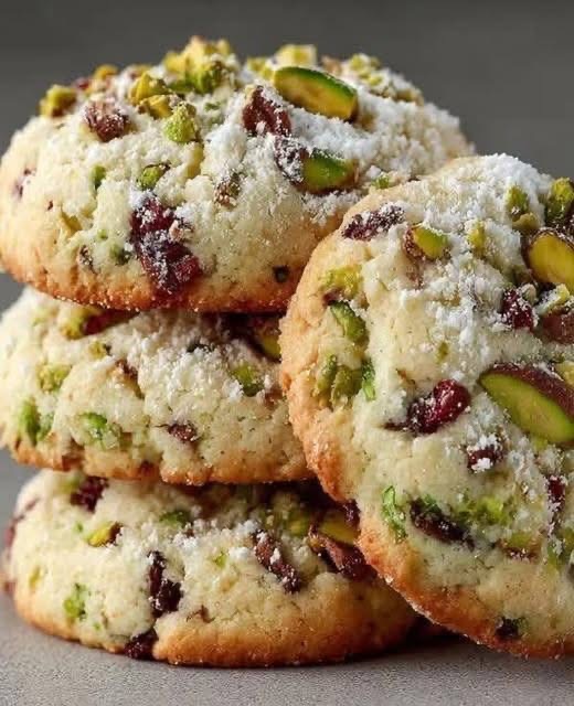 Pistachio Cranberry Cookies are rich, buttery, festive cookies that beautifully combine the nutty crunch of pistachios with the sweet-tart chewiness of dried cranberries. Lightly dusted with powdered sugar, they offer a melt-in-the-mouth texture with bursts of flavor in every bite. These cookies are ideal for tea times, celebrations, holiday gifting, or simply satisfying a sweet craving. Their colorful appearance makes them especially popular during winter months, yet they are enjoyed all year round.