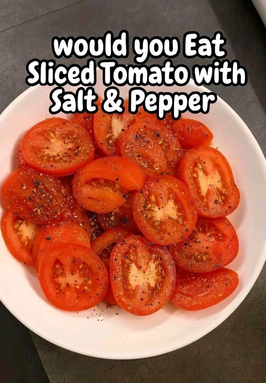 Sliced tomatoes with salt and pepper may look simple, but this dish proves that the best food doesnโt need to be complicated. When ripe, juicy tomatoes meet a pinch of salt and freshly cracked black pepper, something magical happens โ the flavors intensify, the sweetness comes forward, and the texture becomes irresistibly refreshing. This dish is enjoyed as a snack, side dish, or light meal across many cultures, especially during warm seasons when tomatoes are at their peak.